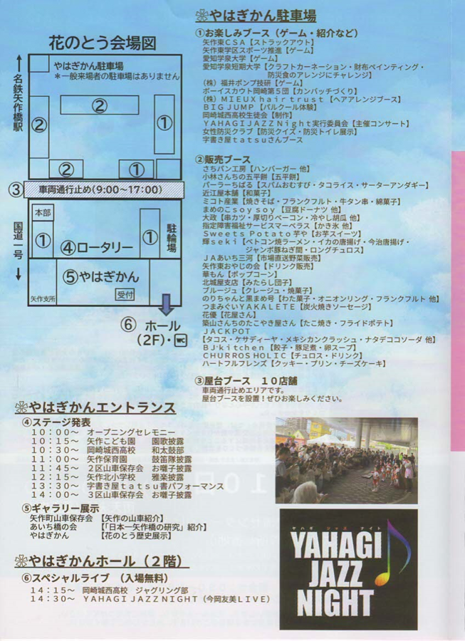 当日は地域の絆を感じられる様々な催しが予定されています。久しぶりに地元へ帰ってくる方、新しくこの街に住み始めた方、矢作地区以外の方も、ぜひ会場へ足をお運びください。