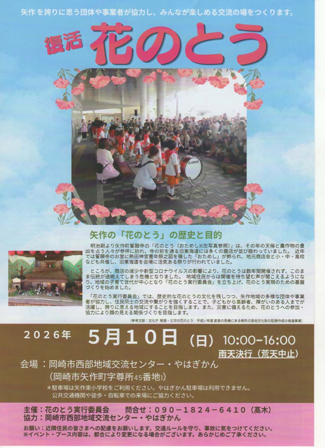 弊社がある矢作地区で、5月10日(日)「復活!花のとう」が開催されます!